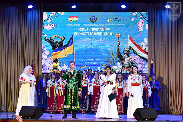 З вітальним словом до присутніх звернувся Посол Таджикистану Давлаталі Назрізода. Він сердечно привітав університетську спільноту зі святом весни, наголосивши на міцній дружбі між українським і таджицьким народами, побажав присутнім благополуччя і процвітання, після чого запропонував переглянути короткий фільм про історію та традиції Навруза. Глядачі із захопленням переглянули яскравий відеосюжет про те, як свято Навруз відзначають у Таджикистані та інших країнах світу.