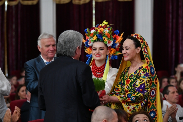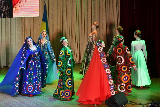 Так, Навруз - символ тріумфу добра над злом, радості над сумом, свято оптимізму, перемоги життєдайних сил природи, її буйного цвітіння. Саме таке цвітіння завжди передавалося у національних костюмах: таджицьких, які вражають розмаїттям фарб і геометричних форм, та українських, що традиційно передають красу кожного етнічного регіону України, тож із везиким захопленням присутні на святі зустріли учасниць народного ансамблю пісні і танцю «Колос», які на чолі з керівником балетної групи старшим викладачем кафедри культурології Ольгою Сауріною представили надзвичайне дійство - показ національних жіночих костюмів України і Таджикистану.