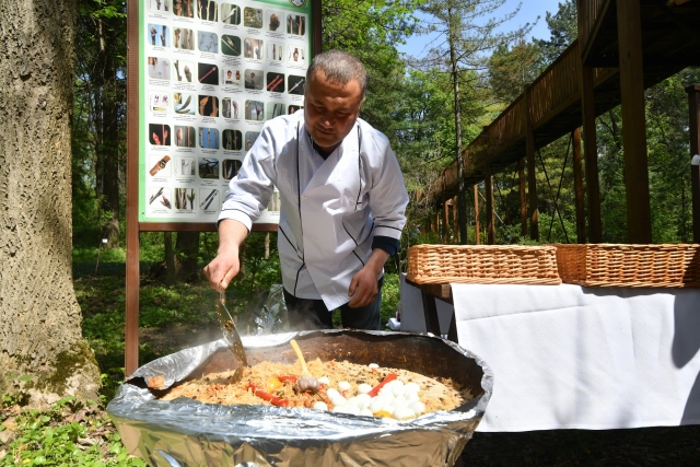 «Хай щастить вам, люди добрі!» - звучала на завершення програми відома пісня професора кафедри культурології Вадима Крищенка у виконанні старшого викладача кафедри культуролої Тараса Кушніра, завідувача лабораторіями Ірини Литвиненко, фахівця Тетяни Симоненко, народного ансамблю пісні і танцю «Колос», а натхненні і щасливі гості перемістилися до Ботанічного саду університету, де змогли пригоститися смаколиками таджицької національної кухні.