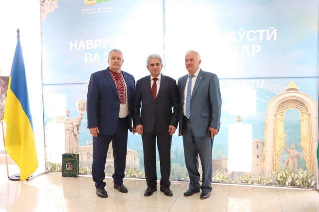 Наступним привітав присутніх Ярослав Гадзало, президент Національної академії аграрних наук України. Він, як давній партнер таджицьких колег, відзначив багаторічну плідну співпрацю між Національною академією аграрних наук та Посольством Таджикистану. «Дружба і взаємна повага - один із постулатів Наврузу, і наші наукові зв’язки є цьому підтвердженням», — наголосив Ярослав Михайлович, маючи на увазі спільні проєкти українських і таджицьких науковців та вручивши Послу Таджикистану відзнаку НААН.