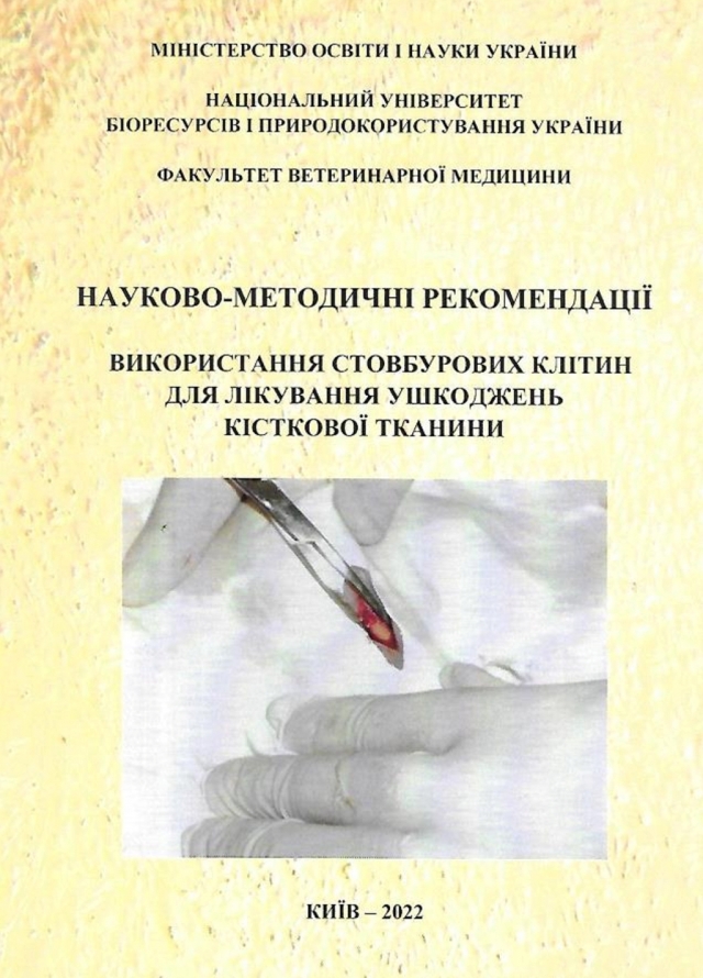 Науково-методичні рекомендації використання стовбурових клітин для лікування ушкоджень кісткової тканини / Мазуркевич А. Й., Савчук т. Л., Бокотько Р. Р., Малюк М. О., Кладниька Л. В., Ковпак В. В., Харкевич Ю. О. – Київ : НУБіП України, 2022.