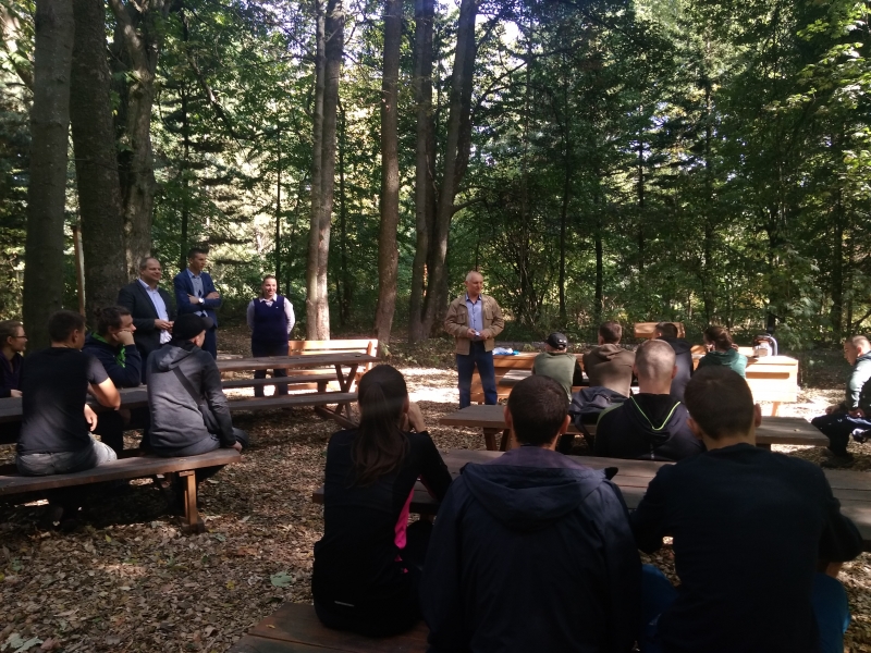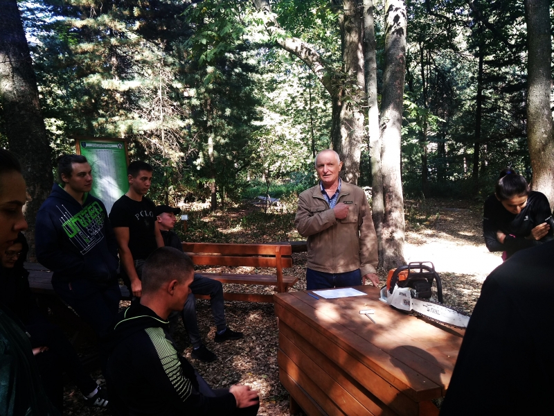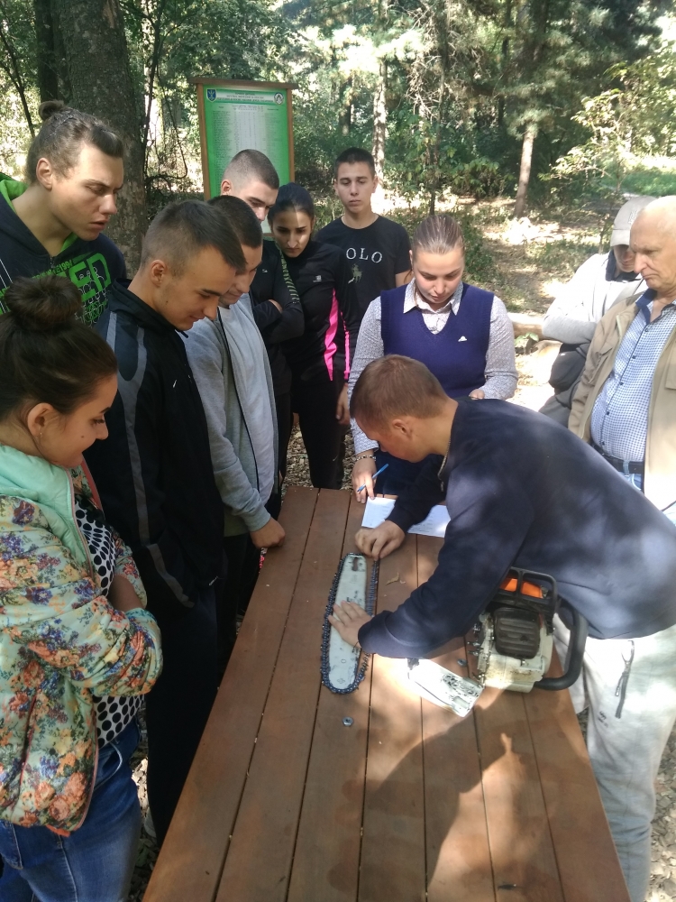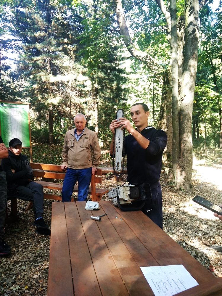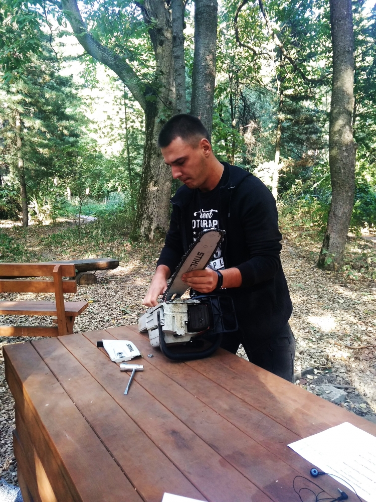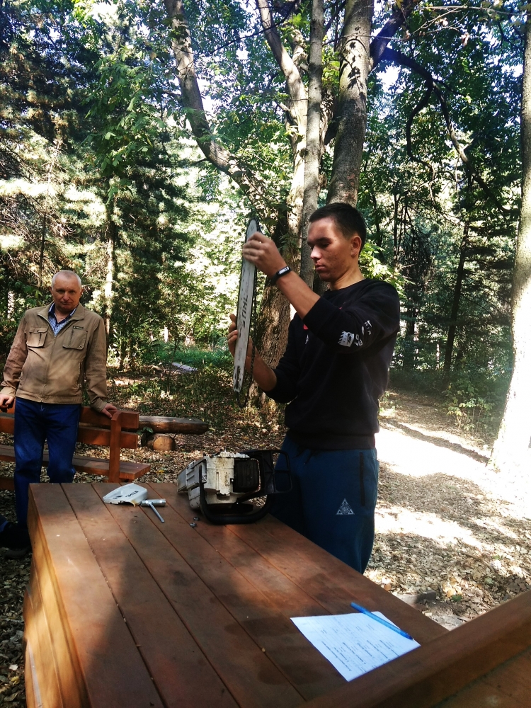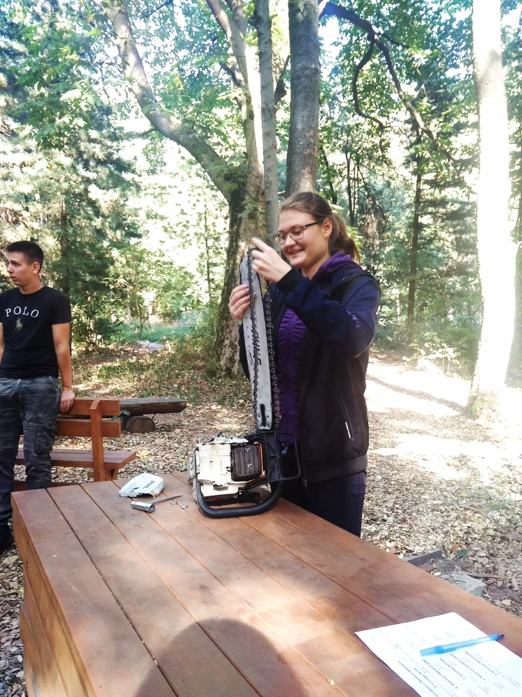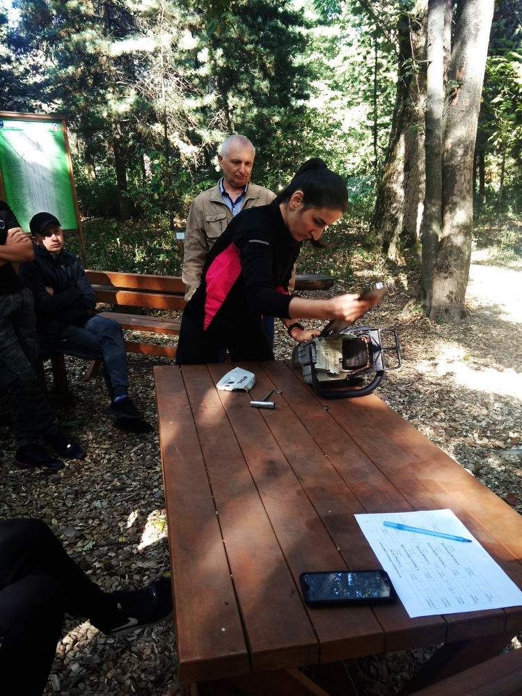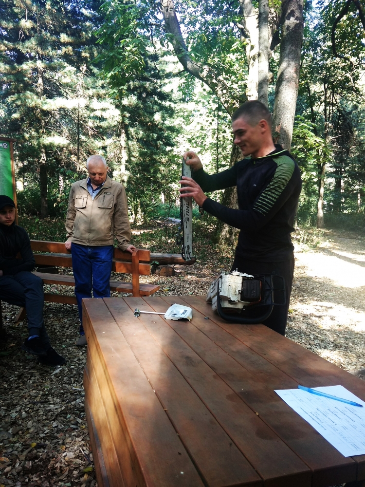 Квест розпочався із привітання директора ННІ лісового і садово-паркового господарства Петра Лакиди, завідувача кафедри таксації лісу та лісового менеджменту Андрія Білоуса, керівника гуртка KFSA Ганни Лобченко та призера всеукраїнського змагання з лісового багатоборства Володимира Малюги. Саме Володимир Миколайович розповів історію заснування подібних змагань та, як надзвичайно творча особистість, продекламував власні вірші про ліс та про «Зелений спецназ» лісівників. А далі відразу до роботи – конкурс із заміни ланцюга бензомоторної пилки, і звісно, на швидкість. Свою вправність показували як хлопці, так і дівчата, а переможцями цього конкурсу стали: 3 місце – Максим Фесюк, 2 місце – Олександр Горицький і 1 місце із результатом 23 секунди – Ярослав Федчик.