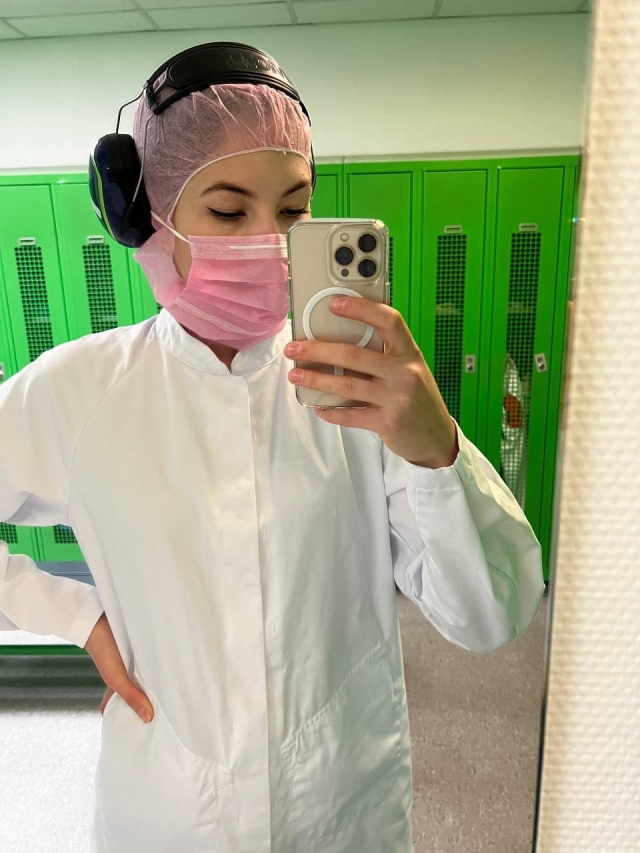 Оришака Таня, студентка 1 року навчання магістратури: «Я навчаюся на магістратурі факультету харчових технологій та управління якістю продукції АПК. На даний час проходжу виробничу практику на заводі ,,Alfein Feinkost" в Німеччині в місті Laage. На цьому підприємстві я вдруге. Практика на виробництві різноманітна, цікава. Завод випускає як звичайну продукцію, так і веганську (бургери, хот-доги, нагетси, шніцелі та ін.). На заводі працюють 2 лінії. Перша - по виготовленню бургерів та хот-догів, друга - веганських нагетсів, шніцелів, фрикадельок, котлет, рибних паличок. Також є цехи, в яких ця продукція пакується. Більш цікавою є робота на другій лінії. Там ми бачимо повний процес створення продукту від замішування суміші до виходу замороженої та запакованої продукції. На практиці ми проводимо по 8-9 год 5 днів на тиждень. Після роботи маємо вільний час для відпочинку, а у вихідні дні подорожуємо Німеччиною. Проживаємо в квартирі, яку надає завод. Умови чудові. По приїзді було все необхідне: посуд, постіль. Поруч є продуктовий магазин, зупинка потягу, яким ми можемо поїхати до міста. Я вдячна своєму факультету за таку прекрасну можливість не лише застосувати свої знання на практиці, а й подорожувати іншою країною».