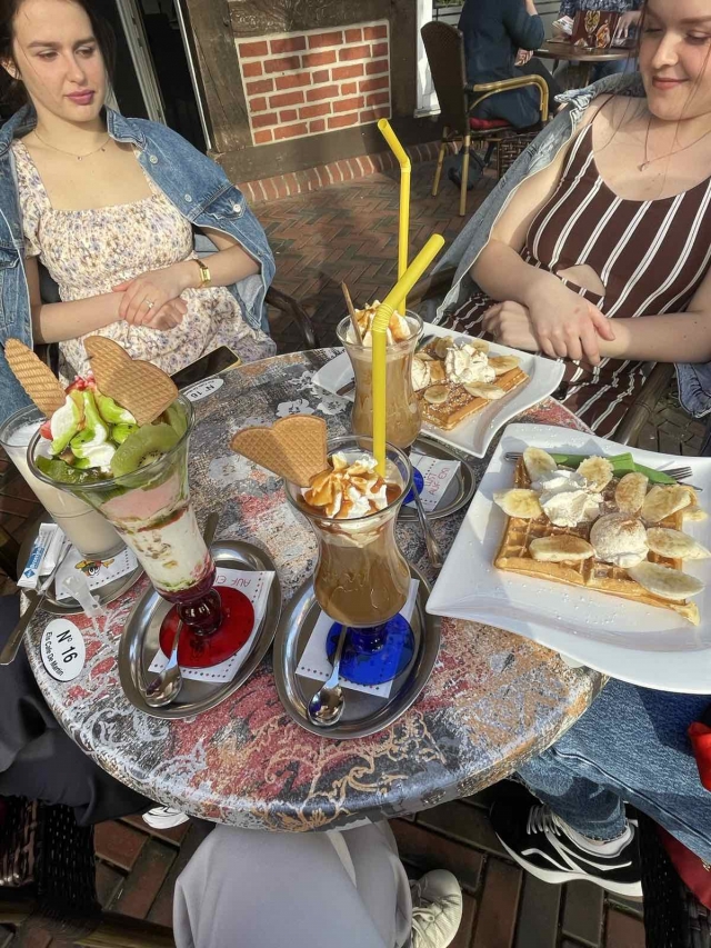 «Особисто я зі своїми одногрупниками наразі проходжу практику у місті Лоне, де знаходиться найголовніша філія цього підприємства», - розповідає староста 1 групи 3 курсу Ангеліна Кулачок. «Завод працює у дві зміни - першу та другу. Робочий день може складати від 7 до 9 годин в залежності від зміни. Студенти, які прибувають на практику, мають можливість ознайомитися з усіма технологічними процесами виробництва: виробництво напівфабрикатів, пакування, нарізання м’яса, розпаковування м’яса та інші. Окрім того, в місті Лоне студенти не мають сталої зміни, тобто 2 тижні поспіль можна виходити в першу зміну або ж навпаки у другу. На проходження практики нас возить таксі, водіями якого є студенти, які мають посвідчення водія. А живемо ми у сусідньому місті - Діпхольц, що знаходиться за 15 км від Лоне. Студенти мешкають у великому будинку та у квартирах, що знаходяться по сусідству. Мені дуже подобається наше розташування, адже ми проживаємо у центрі міста, поряд якого знаходиться парк, басейн, різні магазини, кав’ярні та багато іншого. Зазвичай ми маємо 2 вихідних - субота та неділя, але бувають винятки, коли потрібно виходити на завод і в суботу. У свій вільний час ми багато подорожуємо та дізнаємося багато чого цікавого. За період проходження практики я з друзями змогла відвідати не лише інші міста, але й країни. Ми побували у Парижі, Амстердамі, Гаазі, відвідали Гамбург, Бремен та багато інших міст. Окрім цього, ми доволі часто любимо збиратися разом та ходити на морозиво або в басейн.