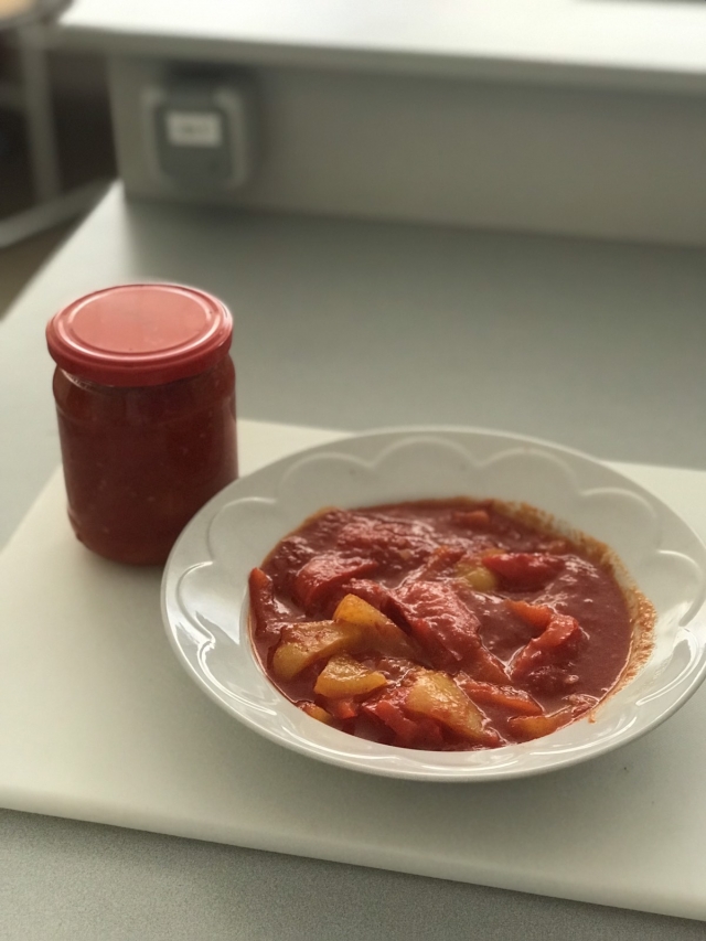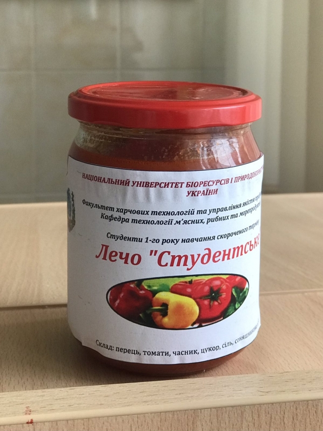 Роботи не були б завершеними, якби ми самі не виготовили лечо. Це було захоплююче: ми виконали всі підготовчі операції, як би це було на виробництві, простерилізували тару, ретельно помили овочі, нарізали, варили лечо згідно рецептури, наданої нам викладачем. По завершенню виготовлення провели дегустацію. Потім підготували етикетку на банку з вказуванням реквізитів. Все це склало на нас неймовірне враження.