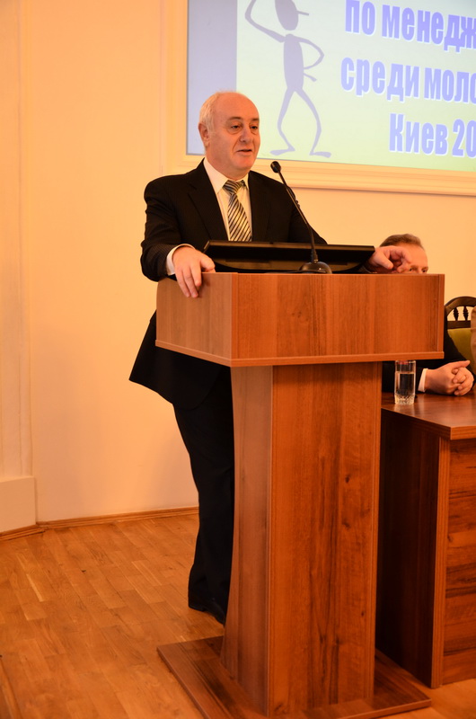 Першими учасників Гран-прі VІ Міждержавної олімпіади з менеджменту серед молоді привітали начальник науково-дослідної частини Університету, професор кафедри годівлі тварин та технології кормів імені Павла Дмитровича Пшеничного, д.с.-г. н. Володимир Отченашко та завідувач кафедри стандартизації та сертифікації с.-г. продукції, д.т.н., професор Владислав Сухенко.