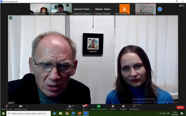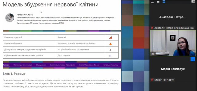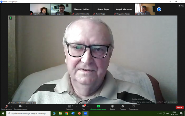 Від кафедри фізики нашого інституту уасників онлайн школи привітав Анатолій Відьмаченко, професор кафедри фізики НУБіП України, доктор фізико-математичних наук, професор, член Президії Київського обласного територіального відділення Малої академії наук України. Відьмаченко А. П. звернув увагу присутніх на особливості написання наукових робіт з метою дотримання принципів академічної доброчесності.