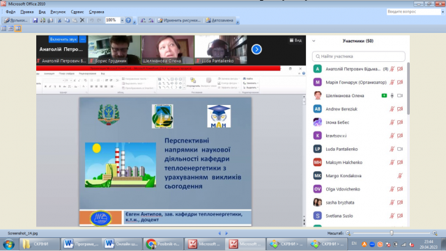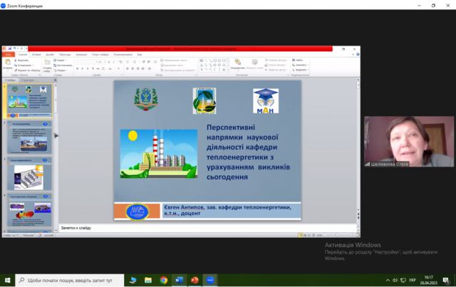 Від кафедри теплоенергетики виступила доцент, кандидат технічних наук, Олена Шеліманова. ЇЇ доповідь на тему «Перспективні напрямки наукової діяльності кафедри теплоенергетики з урахуванням викликів сьогодення. Школа юного енергетика – простір нових можливостей учнівської молоді» викликала неабиякий інтерес у слухачів.