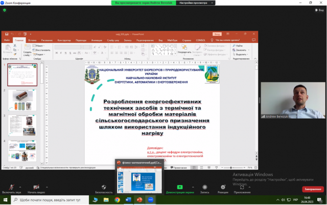 Доповідь на тему «Розроблення енергоефективних технічних засобів з термічної та магнітної обробки матеріалів сільськогосподарського призначення шляхом використання індукційного нагріву» представив Андрій Березюк, доцент кафедри електротехніки, електромеханіки та електротехнологій, кандидат технічних наук, доцент.