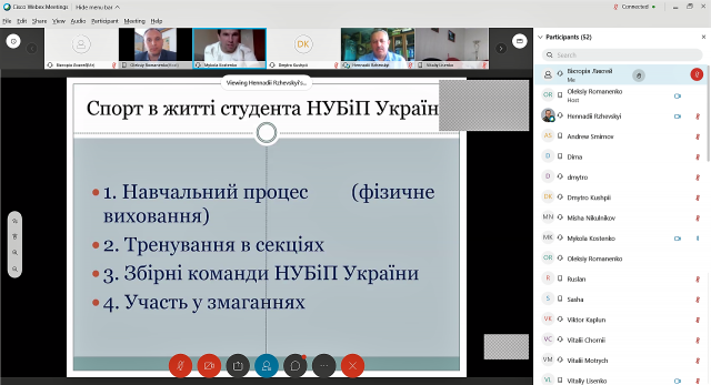 Далі завідувачем кафедри фізичного виховання майстром спорту України міжнародного класу з футболу Миколою Костенком було представлено спортивні секції, які чекають першокурсників, а також анонс спортивних змагань у університеті, які плануються у поточному навчальному році за стабільної санітарно-епідеміологічна ситуації в країні.
