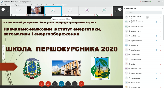 ННІ енергетики, автоматики і енергозбереження 13 вересня прийняв естафету вже традиційного для нашого університету заходу «Школа першокурсника». Керуючись рекомендаціями Міністерства освіти і науки та Міністерства охорони здоров'я дана зустріч була проведена в режимі онлайн і розпочалась з вітання та напутніх слів до першокурсників ректора Національного університету біоресурсів і природокористування України Станіслава Ніколаєнка. У своєму зверненні Станіслав Миколайович розповів про історію університету, озвучив головні напрями діяльності структурних підрозділів, згадав видатних і заслужених випускників, роз’яснив особливості навчального процесу за карантинних умов та привітав вступників із долученням до студентської родини університету і побажав великих досягнень у навчанні.