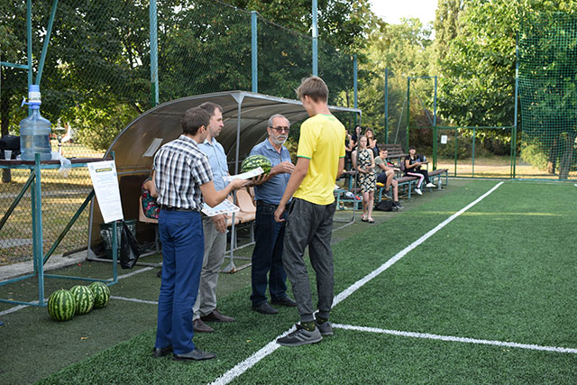 З рук професора Віктора Маурера, заступників директора ННІ Віктора Свинчука та Олександра Совакова, сина та зятя М.Д. Полякова Андрія Миколайовича та Ростислава Миколайовича усі команди учасники першості отримали традиційний приз – кавун, який уособлює одночасно і футбольний м’яч, який попри все єднає людство і планету Земля, яка вкрита лісами та зеленими насадженнями. Команді переможниці було вручено красивий перехідний Кубок М.Д. Полякова, який дуже нагадує Кубок Ліги Чемпіонів, а гравці команди переможниці та команд призерів отримали медалі і дипломи.