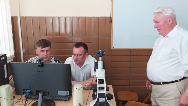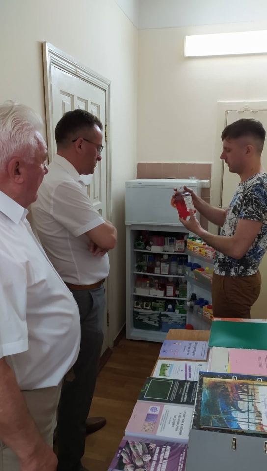 Вадим Кондратюк відвідав також навчальні аудиторії, де проводяться заняття з дисципліни «Патофізіологія тварин» і «Ветеринарна імунологія» для здобувачів вищої освіти, студентів аспірантури, для роботи наукових студентських гуртків. Зокрема, він ознайомився із відеокомплексом для дистанційного навчання студентів та використання в лабораторних умовах альтернативних методів навчання в патофізіології та імунології.