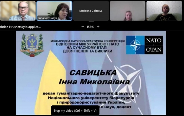 02 червня 2022 року на базі кафедри міжнародних відносин та суспільних наук гуманітарно-педагогічного факультету Національного університету біоресурсів і природокористування України відбулась міжнародна науково-практична конференція «Відносини між Україною і НАТО на сучасному етапі: досягнення та виклики», співорганізаторами якої виступили Центр інформації та документації НАТО в Україні, Дипломатична Академія України імені Геннадія Удовенка при МЗС України.