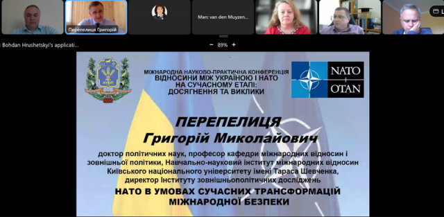 Доктор політичних наук, професор кафедри міжнародних відносин і зовнішньої політики ННІ міжнародних відносин Київського національного університету імені Тараса Шевченка, директор Інституту зовнішньополітичних досліджень Григорій ПЕРЕПЕЛИЦЯ, у своїй доповіді зупинився на ролі НАТО в умовах сучасних трансформацій міжнародної безпеки. Доповідач зазначив, що міжнародні організації, які забезпечували стару систему міжнародних відносин і міжнародної безпеки перестають функціонувати і на зміну їм приходять нові. НАТО так само переживає воєнно-політичну кризу, що підтверджує стратегія стримування. На думку доповідача, на часі – формування троїстих оборонних альянсів, проте не варто відкидати питання колективної оборони.