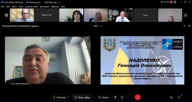 Надзвичайний і Повноважний Посол України, директор Дипломатичної академії імені Геннадія Удовенка при МЗС України, український дипломат, випускник нашого університету, Геннадій НАДОЛЕНКО висловив переконання, що ключовими умовами для досягнення перемоги є зброя від країн НАТО і соціальний захист для ВСУ. Гаслом для суспільства має стати «Україна-НАТО: навіки разом».