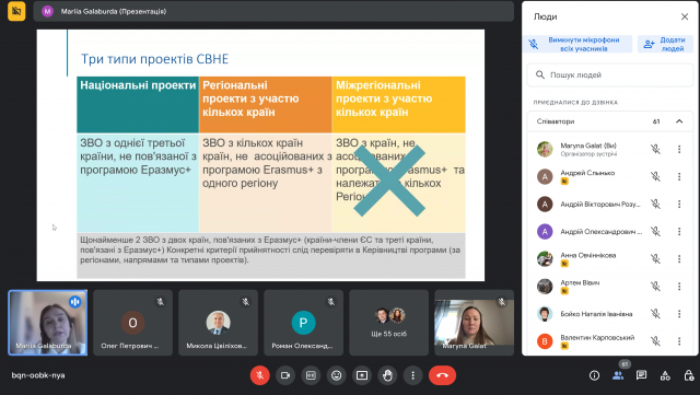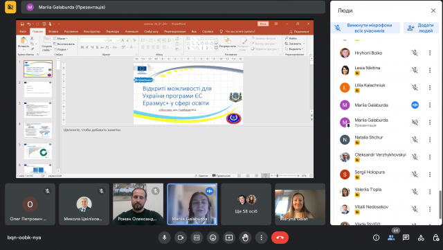 Наступну сесію з доповіддю «Відкриті можливості для України програми ЄС Еразмус+ у сфері освіти» представляла доцент кафедри ветеринарної гігієни ім. професора А.К. Скороходька Марія Галабурда, яка зорієнтувала учасників по цьогорічним відкритим програмам і умовах участі у них.