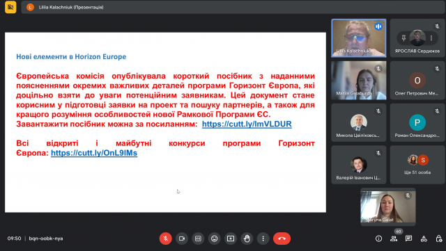 Наступну сесію «Наукові грантові програми» представляла професор кафедри біохімії і фізіології тварин ім. акад. М.Ф. Гулого Лілія Калачнюк з доповіддю на тему «Програма Горизонт Європа. Потенційні можливості участі в проєктах», яка акцентувала увагу присутніх на особливостях програми і можливостях фінансової підтримки наукових досліджень.