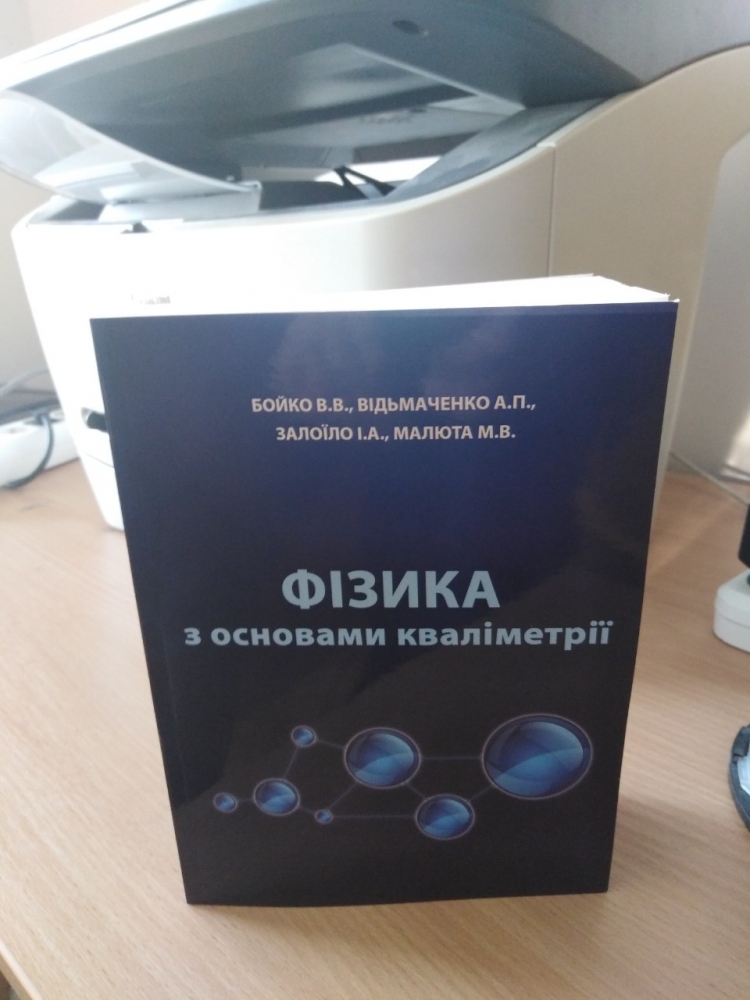 Для розширення теоретичної підтримки згаданого курсу співробітники кафедри Відьмаченко А.П., Бойко В.В., Залоїло І.А. та Малюта М.В. підготували навчальний посібник «Фізика з основами кваліметрії», який нещодавно побачив світ у видавництві «Ліра-К». Книга поєднує у собі основні відомості загального курсу фізики з поясненням фізичних засад класичних та іноваційних методів дослідження якості сільськогосподарської продукції.