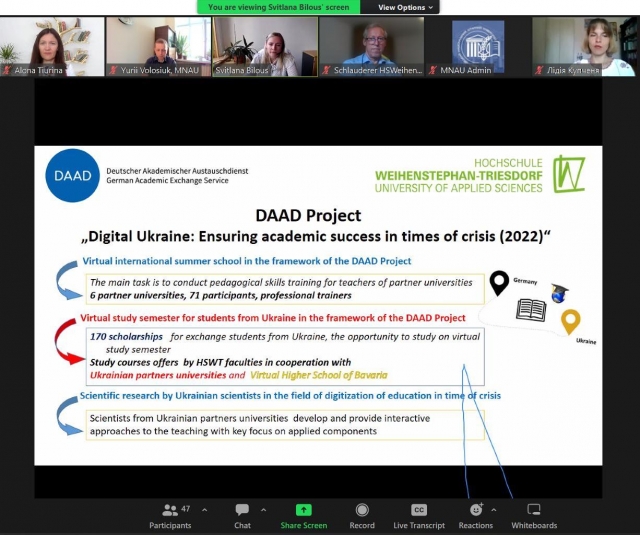 З 22 серпня по 15 вересня 2022 року НПП з 6-ти аграрних університетів України пройшли навчання у віртуальній міжнародній літній школі «Improving digital competences in virtual education: challenges in times of crisis» в рамках проекту DAAD «Україна цифрова: забезпечення академічної успішності під час кризи».