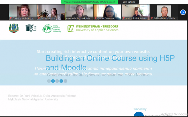 Протягом шести днів українські експерти ділилися досвідом щодо використання різноманітних і важливих цифрових інструментів у навчальному процесі. Зокрема, завідувач кафедри інформаційних систем і технологій, доцент Юрій Волосюк та доцент кафедри маркетингу та менеджменту, д-р Анастасія Полторак (Миколаївський національний аграрний університет) пояснили слухачам особливості створення онлайн-курсу за допомогою інструментів H5P та Moodle, особливості налаштувань Zoom.