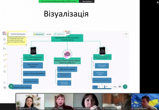 Над освоєнням онлайн-інструментів плідно працювали 11 НПП НУБіП України, зокрема: доцент кафедри адміністративного менеджменту та ЗЕД Олександра Ралко, доцент кафедри адміністративного менеджменту та ЗЕД Альона Тюріна, аспірант кафедри адміністративного менеджменту та ЗЕД Денис Хлистун, доцент кафедри менеджменту ім. проф. Й.С. Завадського Аліна Троян, доцент кафедри менеджменту ім. проф. Й.С. Завадського Наталія Драгнєва, доцент кафедри кормовиробництва, меліорації і метеорології Анна Ярош, доцент кафедри генетики, селекції і насінництва ім. проф. М.О. Зеленського Юлія Дмитренко, завідувачка лабораторії біотехнології, доцент кафедри відтворення лісів та лісових меліорацій Оксана Чорнобров, доцент кафедри статистики та економічного аналізу Леся Воляк, доцент кафедри фінансів, д-р Юлія Негода та доцент кафедри економіки Віталій Нагорний.