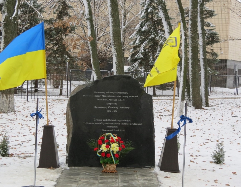 З нагоди цієї поважної дати 17 листопада в Миронівському інституті відбулася урочиста подія – відкриття меморіального каменю для увічнення пам’яті про Соломона Львовича Франкфурта – фундатора Центральної дослідної станції, від заснування якої веде свою історію інститут. На великому чорному гранітному камені – надписи українською, литовською та єврейською мовами: «Видатному вченому-агробіологу, основоположнику Миронівського інституту пшениці імені В.М. Ремесла НААН професору Франкфурту Соломону Львовичу (1866–1954)».