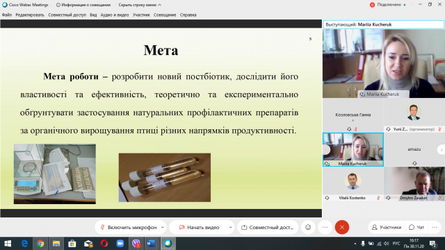 30 листопада 2020 року відбулося чергове засідання науково-технічної ради Науково-дослідного інституту здоров’я тварин в режимі онлайн з використанням платформи Webex meeting (Cisco).
