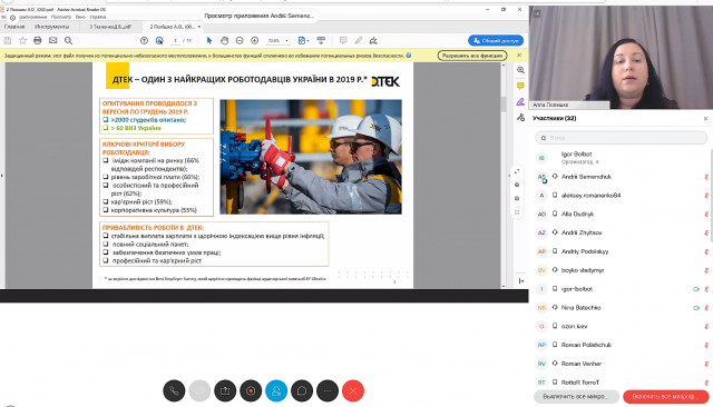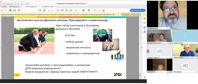 ННІ енергетики, автоматики і енергозбереження забезпечив проведення вебінару за участю представників ПрАТ ДТЕК «Київські електромережі» Андрія Семенчука, Дмитра Ткаченко, Алли Полішко та ПрАТ «Київобленерго» Руслана Данченко, Андрія Мазуренка та понад 20 студентів. Проведений вебінар засвідчив велику зацікавленість студентів до навчання з елементами дуальної освіти, відбулася жвава онлайн-дискусія.