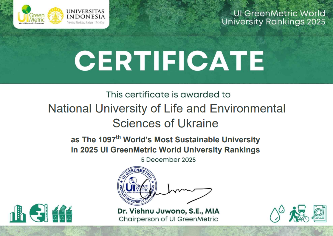НУБіП України посилює позиції в рейтингу сталого розвитку UI GreenMetric World University Rankings 2025