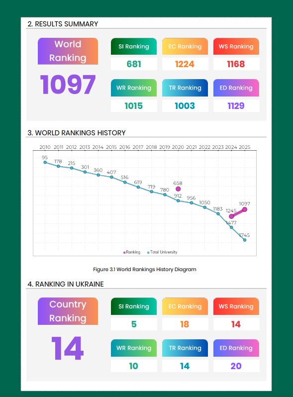 У 2025 році рейтинг об’єднав 1745 університетів світу та став важливою платформою для порівняння практик сталого розвитку у вищій освіті. Зростання участі українських університетів з 26 до 33 в порівнянні з минулим роком демонструє підвищену увагу до екологічних стандартів, інтеграції європейських підходів до екологічного управління та розвитку «зелених» політик у секторі вищої освіти.