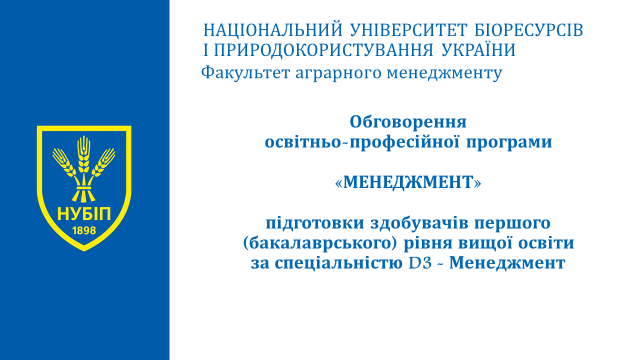 Освітня програма «Менеджмент» підготовки здобувачів першого (бакалаврського) рівня вищої освіти за спеціальністю D3 Менеджмент галузі знань D Бізнес, адміністрування та право є однією з ключових програм факультету аграрного менеджменту, адже саме вона формує майбутніх фахівців, здатних ефективно управляти підприємствами, впроваджувати інновації та приймати стратегічні рішення в умовах сучасних викликів. Саме тому її регулярне обговорення на навчально-методичній раді має надзвичайно важливе значення.