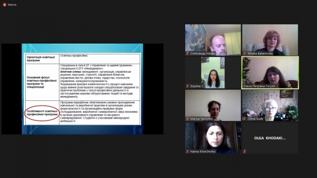 Цілком обґрунтованим було те, що окрім членів проєктної групи до обговорення ОПП долучились бізнесмени-роботодавці, які вже мають досвід співпраці з випускниками програми; колеги з інших провідних навчальних закладів, які також здійснюють підготовку управлінців; безпосередньо випускники зазначеної програми; представники наукової спільноти, громадських організацій та інші стейкхолдери. Активними учасниками зустрічі для оновлення і покращення змісту, окреслення перспектив розвитку ОПП «Менеджмент організацій та адміністрування» були: