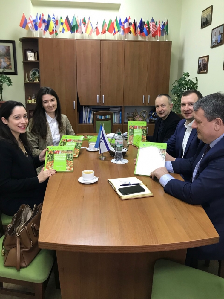 Ізраїльські технології, зокрема в галузі овочівництва, є загальновизнаними у світі та користуються заслуженою популярністю в Україні. Провідні науковці та фахівці-практики з Ізраїлю є частим гостями і у нашому університеті. Під час одного з таких візитів у минулому році екс-заступника директора дорадчої служби Омара Зейдана була прочитана цікава та змістовна лекція про маркетингові рішення, вирощування та переробку помідора. Продовженням цієї співпраці став візит у НУБіП 20 березня представників посольства Держави Ізраїль: першого секретаря, голови політичного департаменту Реут Шапір Бен-Нафталі та керівника проектів Ірини Олійник. Університет на зустрічі представляли проректор з науково-педагогічної роботи, міжнародної діяльності та розвитку Вадим Ткачук, директор ННЦ міжнародної діяльності Олександр Лабенко, в.о. завідувача кафедри овочівництва і закритого ґрунту Іван Федосій та доцент цієї ж кафедри Олександр Цизь.