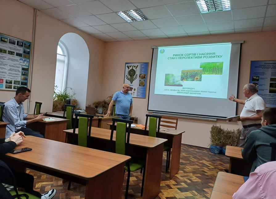 На запрошення кафедри генетики, селекції і насінництва ім. проф. М.О. Зеленського НУБіП України з молодими селекціонерами в рамках навчальної дисципліни "Ринок сортів і насіння" провів гостьову лекцію Олександр Захарчук, доктор економічних наук, професор, член-кореспондент НААН України, завідувач відділу інвестиційного та матеріально-технічного забезпечення ННЦ «Інститут аграрної економіки».