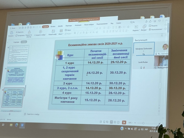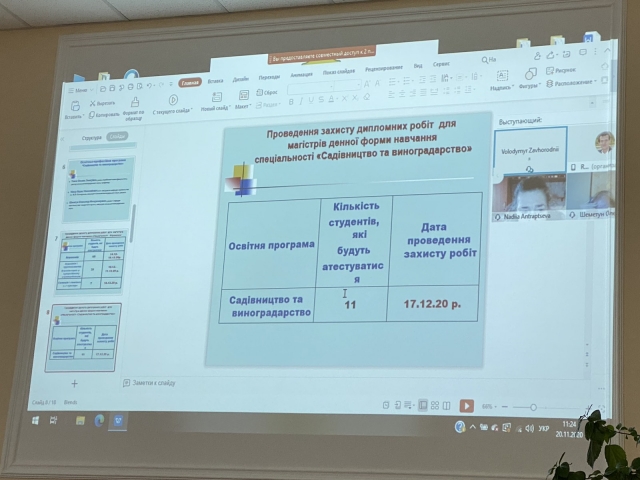 20 листопада 2020 року під головуванням декана Оксани Тонхи відбулося засідання вченої ради агробіологічного факультету в 66 аудиторії 4 корпусу та у зв’язку вимогами проти епідеміологічних заходів у дистанційному режимі.