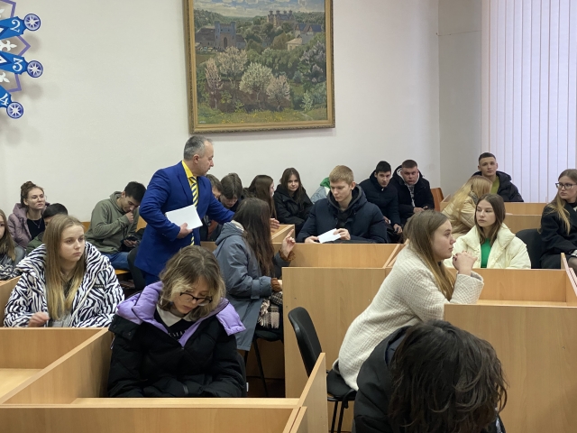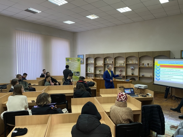 Завідувач кафедри, кандидат сільськогосподарських наук, доцент Іван Федосій поспілкувався зі школярами щодо їх планів на майбутній вступ та пояснив важливість вибору правильної спеціальності у нинішніх умовах.