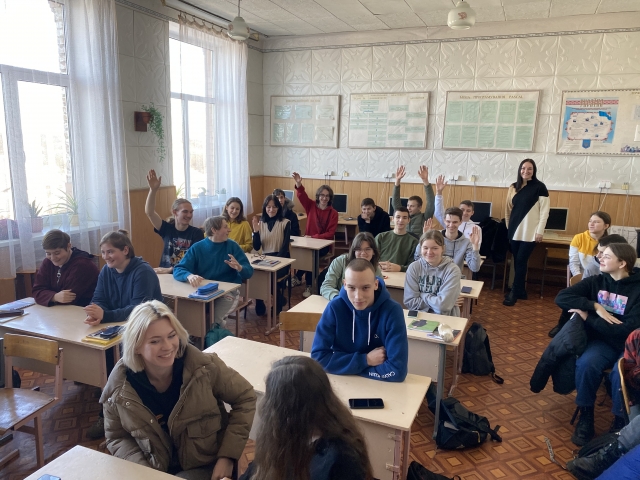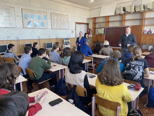 Наступною зупинкою для зустрічі з одинадцятикласниками стало місто Городище, що налічує три школи, ліцеї та гімназії.