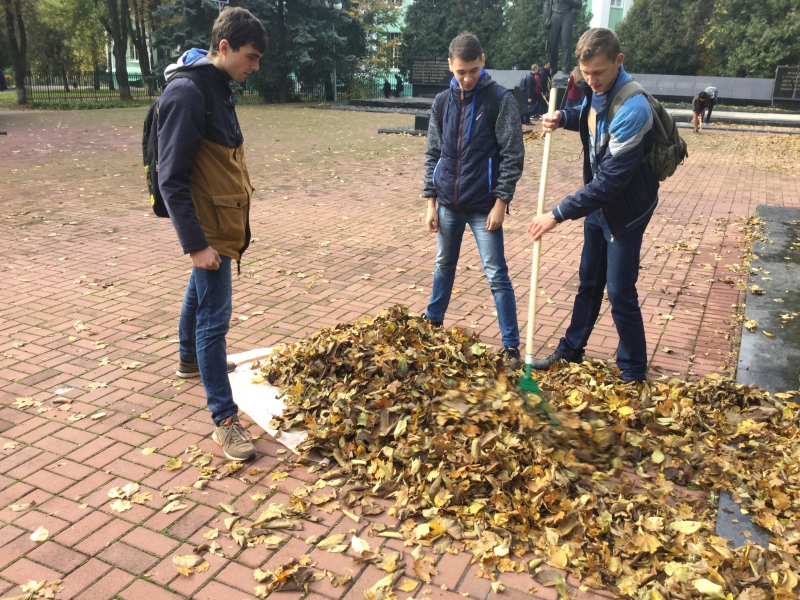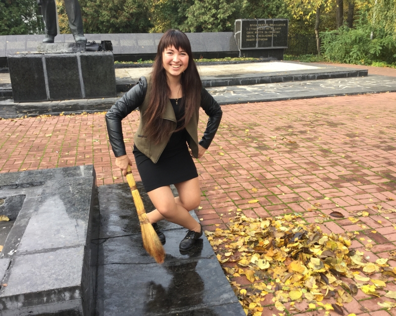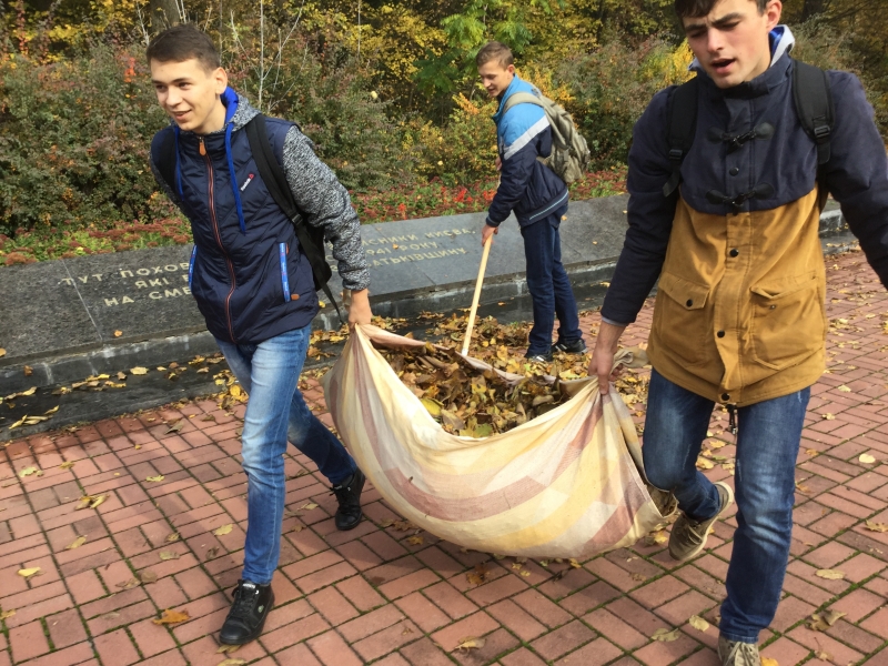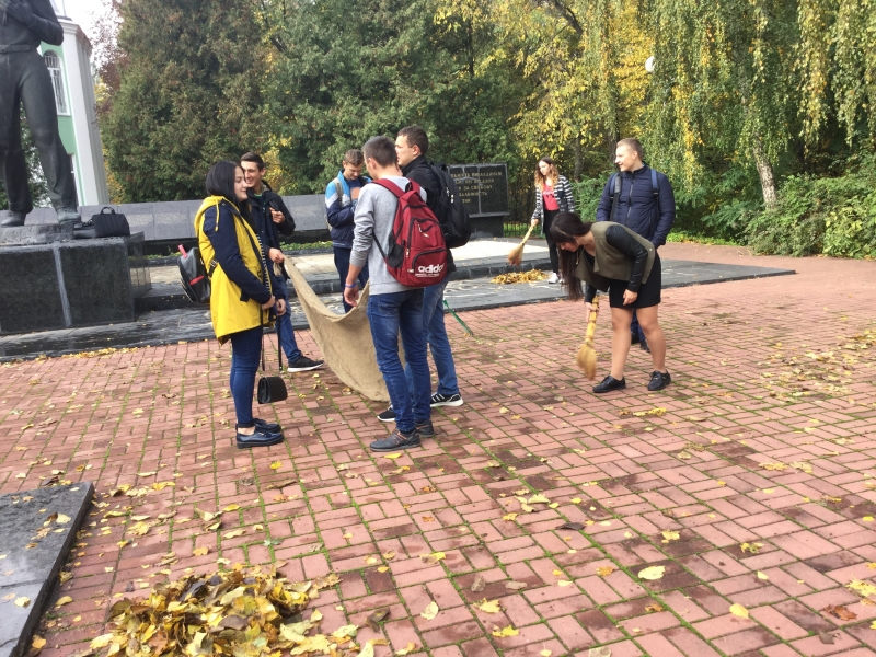 Для більшості з нас першим сильним враженням після вступу до університету стало захоплення від величезної та прекрасної його території, суцільного ландшафтного парку – казкового та неповторного. Але, як кожен «живий організм», він потребує догляду. У жовтні вся площа кампусу вкривається розкішною ковдрою з листя, яка після осінніх дощів стає досить непривабливою та неохайною. Того четверга весело та завзято прибирали ми листя біля навчального корпусу №2 (якраз там, де проходять заняття з хімії та агрофізики).