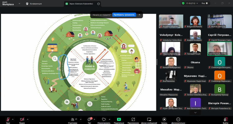 Катерина КРИКУНЕНКО, доцент кафедри публічного управління, менеджменту інноваційної діяльності та дорадництва виступила з доповіддю про роль системи AKIS у розвитку біоенергетичного потенціалу сільського господарства: досвід європейського союзу та можливості для України.