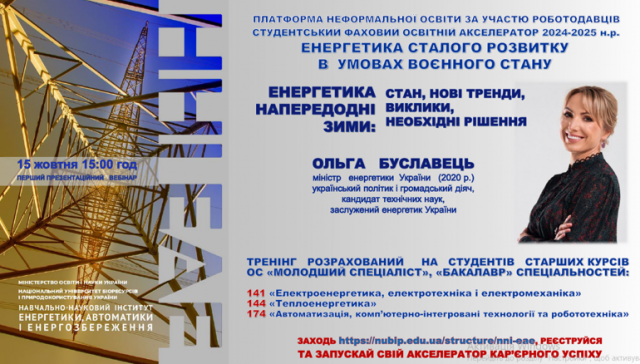 Ольга БУСЛАВЕЦЬ відкрила четвертий сезон студентського фахового акселератора тренінгом «Енергетика напередодні зими: стан, нові тренди, виклики, необхідні рішення»