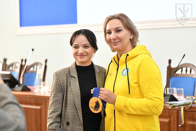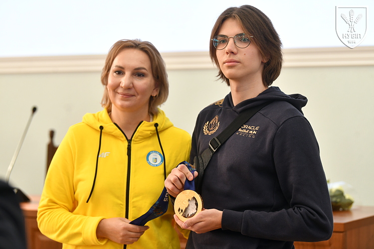 Після цього виступив Микола КОСТЕНКО, завідувач кафедри фізичної культури і спорту НУБіП України, чемпіон світу у складі збірної України з мініфутболу серед студентів. Він розповів про досягнення студентів університету у спорті, які гідно представляють НУБіП України на всеукраїнських і міжнародних змаганнях. Микола КОСТЕНКО підкреслив, що студентський спорт — це фундамент майбутніх олімпійських перемог, а також важливий засіб формування здорової, активної й патріотичної молоді.