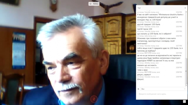 А далі настав час для запитань вступників, які загалом задали їх понад 60. Їх цікавило все: від кількості державних місць, конкурсного балу, вартості проживання в гуртожитку – до участі в університетських творчих колективах. Час зустрічі, яка тривала майже півтори години, промайнув непомітно і слова вдячності від вступників та їхніх батьків засвідчили, що такий формат проведення днів відкритих дверей в нинішніх умовах є, безумовно, ефективним!