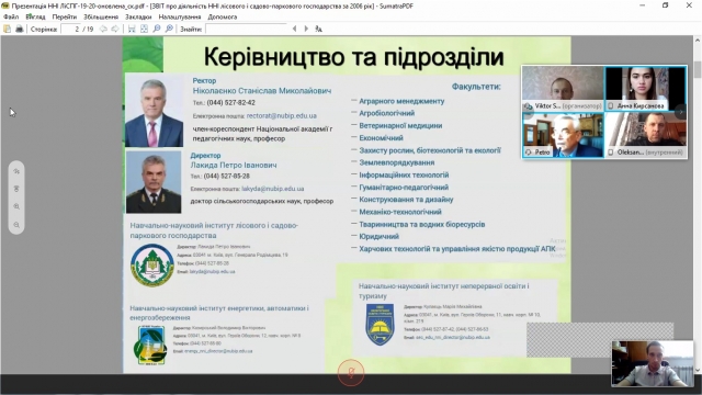29 квітня 2020 року в ННІ лісового і садово-паркового господарства НУБіП України відбувся онлайн день відкритих дверей за допомогою платформи для проведення відеоконференцій Cisco WebEx Meeting. Загалом, для онлайн-зустрічі з представниками ректорату, керівництвом інституту, завідувачами кафедр та працівниками приймальної комісії університету зареєструвалося 97 абітурієнтів, їхніх батьків та випускників минулих років. Випускники шкіл, ліцеїв, гімназій, коледжів представляли різні куточки країни: від Карпат до Донеччини, від Полісся до Степу України. Відзначимо, що найбільш чисельним було представництво Шацького лісового фахового коледжу ім. В.В. Сулька: близько 3-х десятків випускників цього закладу зацікавилися спеціальностями ННІ лісового і садово-паркового господарства.