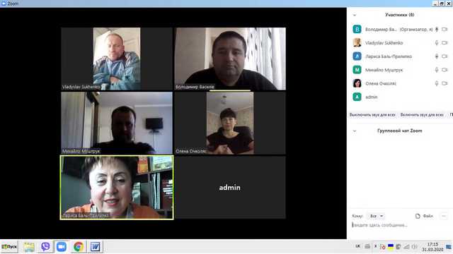 31.03.2020 о 17:00 год. відбулося zoom включення, на якому було розглянуто нагальні питання роботи факультету харчових технологій та управління якістю продукції АПК в умовах карантину.