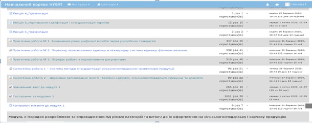 Згідно представлених звітів магістри активно переглядають теоретичний матеріал, виконують практичні завдання та завдання, передбачені для самостійної роботи. На електронних курсах ряду дисциплін факультету студенти успішно склали тестові завдання до навчальних модулів.