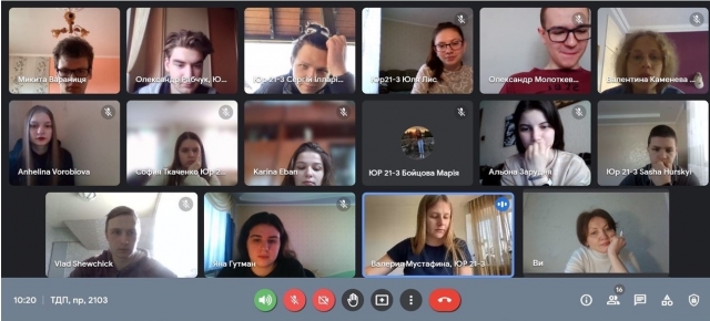 Уже майже місяць триває дистанційне навчання в умовах війни на юридичному факультеті. Надання якісних освітніх послуг у таких складних умовах стало власним фронтом і важливою місією для кожного НПП факультету. Тому, ще на початку березня, очільницею факультету Оленою Ярою було зорганізовано збори трудового колективу та зустрічі з усіма курсами здобувачів факультету для спільного погодження гнучких підходів до організації роботи та налаштування освітнього процесу, щоб він був комфортним для усіх його учасників. Щотижнево відбуваються онлайн засідання деканату та кафедр, зустрічі наставників зі здобувачами та постійне спілкування з усіма учасниками освітнього процесу в асинхронному режимі через використання інформаційного простору.