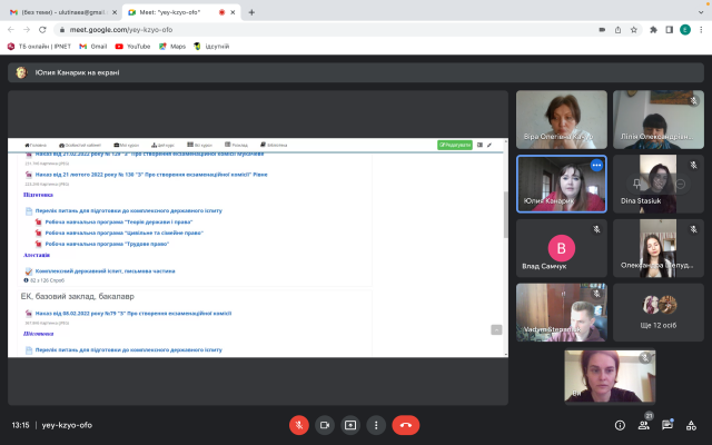 Факультету вдалось налагодити освітній процес із застосуванням технологій дистанційного навчання і для здобувачів заочної форми здобуття освіти. За затвердженим графіком освітнього процесу проведено сесії для здобувачів 1-го, 2-го курсів та триває сесія у 3-го курсу і Магістрів 1-го року навчання. 29, 31 березня та 7 квітня екзаменаційна комісія провела атестаційні іспити для здобувачів заочної форми здобуття освіти ОС «Бакалавр» ОПП Право. Члени комісій позитивно оцінили рівень науково-теоретичної та практичної підготовки випускників. Хотілося б відмітити, що незважаючи на складну ситуацію у окупованих або щойно звільнених містах, усім здобувачі вдалося вийти на зв'язок, підтвердити свої знання та успішно скласти екзамен. Наразі підготовлено випускний наказ та замовлено документи про вищу освіту та плануємо випуски за графіком.