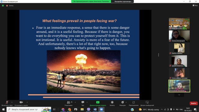 Під час своїх доповідей учасники заходу з української сторони змогли передати колегам з Індії всю біль та страждання українського народу на сьогоднішній день, а також поділились своїм досвідом та методами, які допомагають їм заспокоїтись та знайти внутрішню рівновагу у тяжких життєвих ситуаціях.