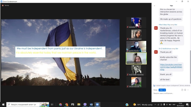 Загалом онлайн зустріч відбувалась протягом 5 годин. Індійські фахівці поділилися і багатим своїм досвідом. В якості своїх методик ними було запропоновано молитви та пісні на позитивні тематики. Після закінчення заходу усі отримали сертифікати учасника.